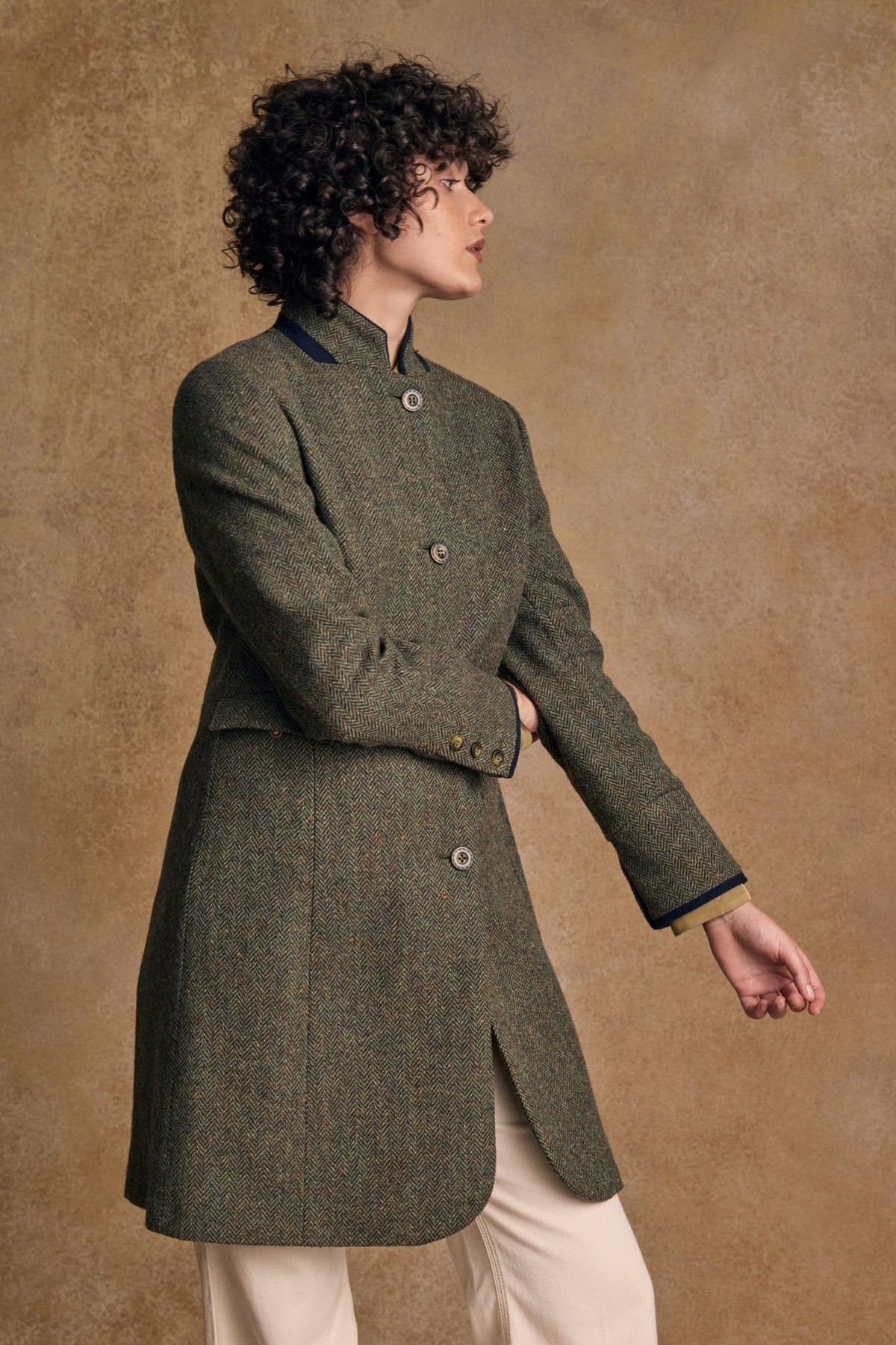 Pamela Tweed Coat - Donegal Moss Herringbone