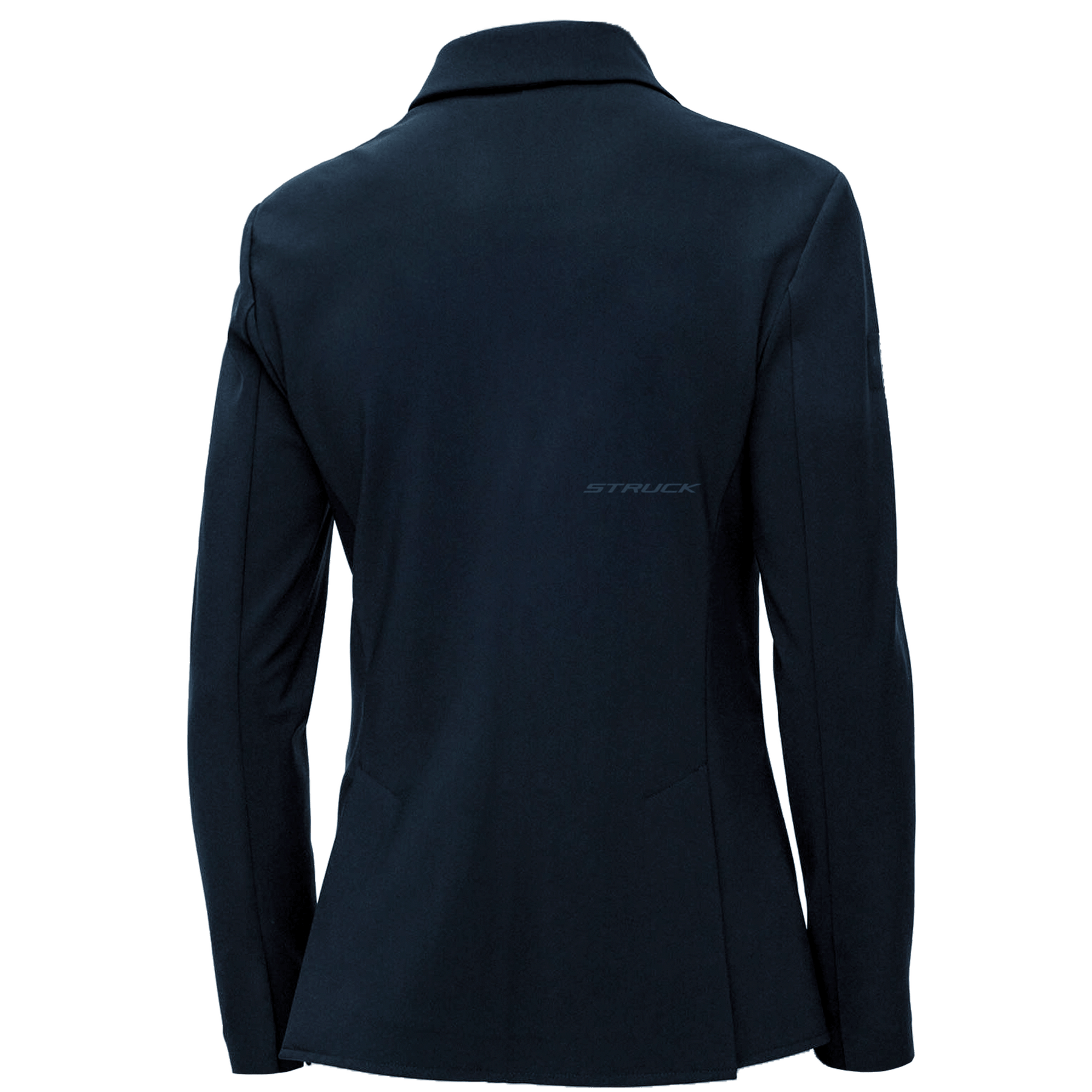 The STRUCK WJ10 combines cutting-edge technical fabrics with a timeless silhouette tailored specifically for the female rider. Lightweight, breathable, and water-resistant, this show jacket offers four-way stretch for full mobility and all-day comfort. Subtle details like contoured seams, tone on tone decoration, and a hidden zipper under classic snap buttons ensure a polished look without sacrificing performance. We've made this the perfect traditional jacket length for the hunters and equitations, complete with back vents for that perfect look in the ring.