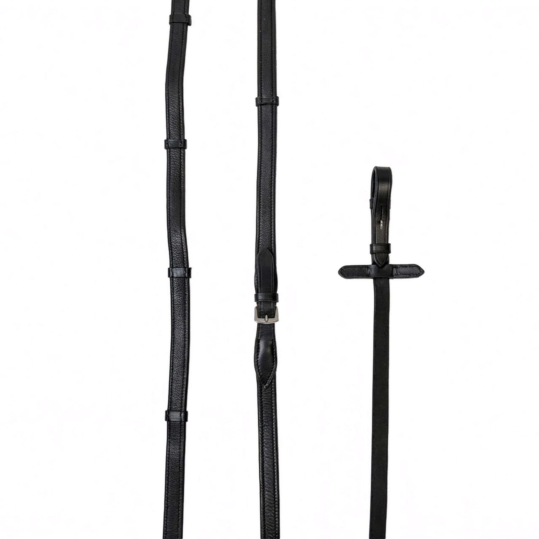मुलायम गद्देदार चमड़े की लगाम, सपाट चमड़े के सिरे सहित।
