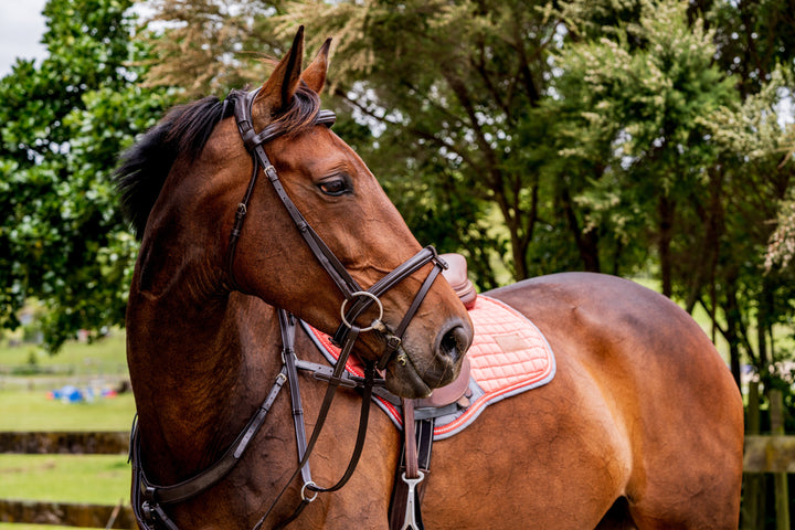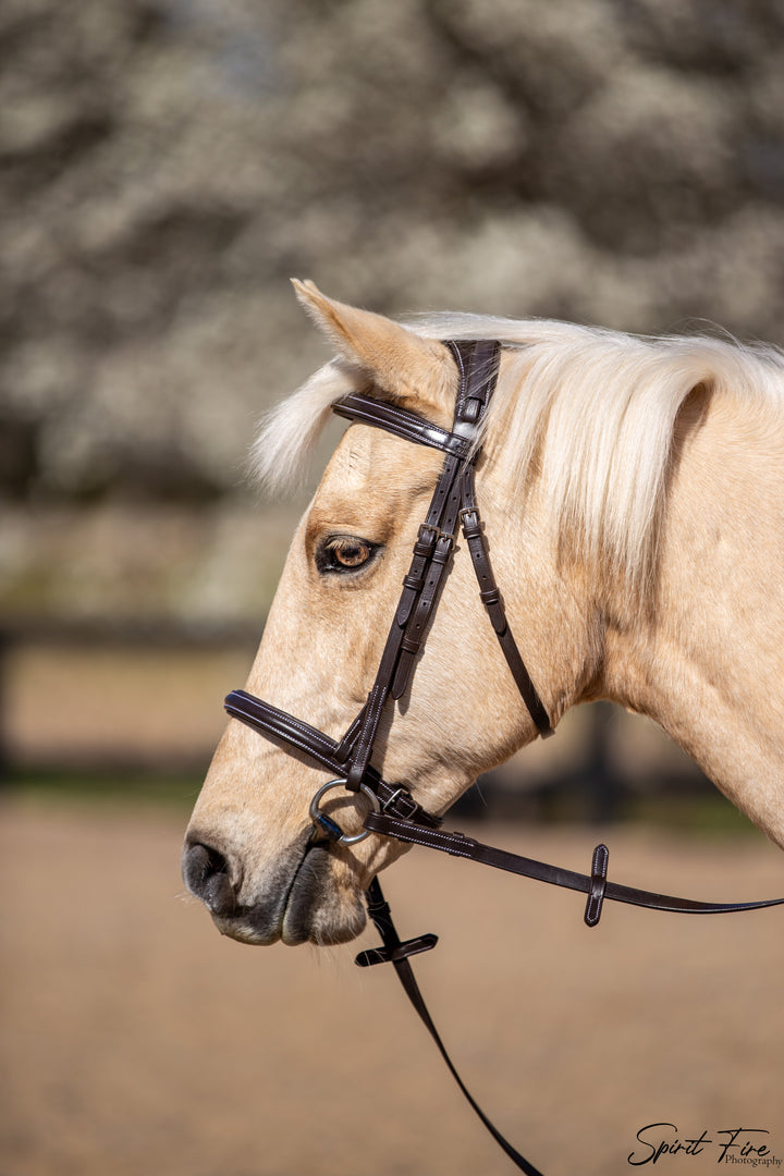 हमारे फ्रेंच स्नैफ़ल ब्रिडल का हर विवरण स्टाइल और प्रदर्शन दोनों को बढ़ाने के लिए सोच-समझकर डिज़ाइन किया गया है। शानदार मुलायम चमड़े से लेकर नोज़बैंड और ब्रोबैंड पर जटिल रूप से सिले पैडिंग तक, हर पहलू बेहतरीन शिल्प कौशल और विवरण पर ध्यान देने की बात करता है।