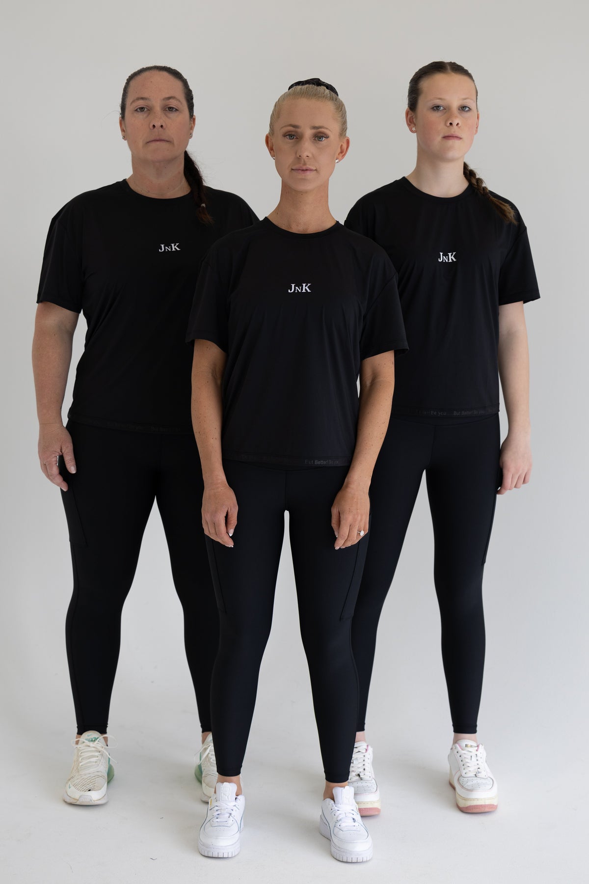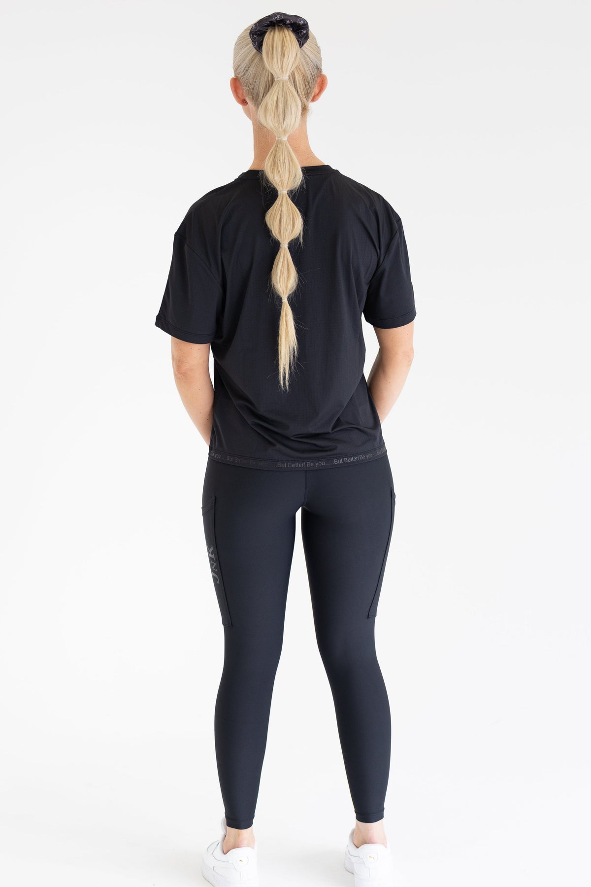 Introducing our Essential Leggings in black - the perfect combination of style and functionality! With a high, wide waistband and four-way stretch, these leggings provide ultimate support and the perfect fit. Featuring quick-drying, moisture-wicking fabric, and multiple phone pockets, these leggings are a must-have for any active lifestyle. The non-see-through fabric and durable double stitching make them suitable for any activity, while the chic black logos add a touch of style. Upgrade your wardrobe today!