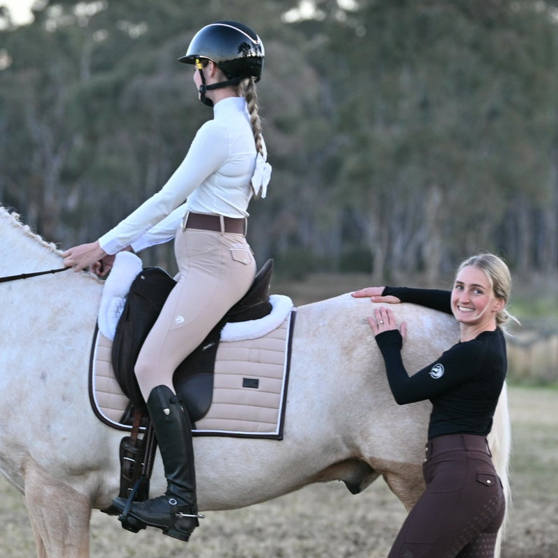 These saddle pads are made by a specialist manufacturer with elevated craftsmanship, using premium materials and featuring our one-of-a-kind number holder/bow attachment—resulting in a more refined, high-end finish that truly sets them apart from not only our other collections, but from every other equestrian brand.