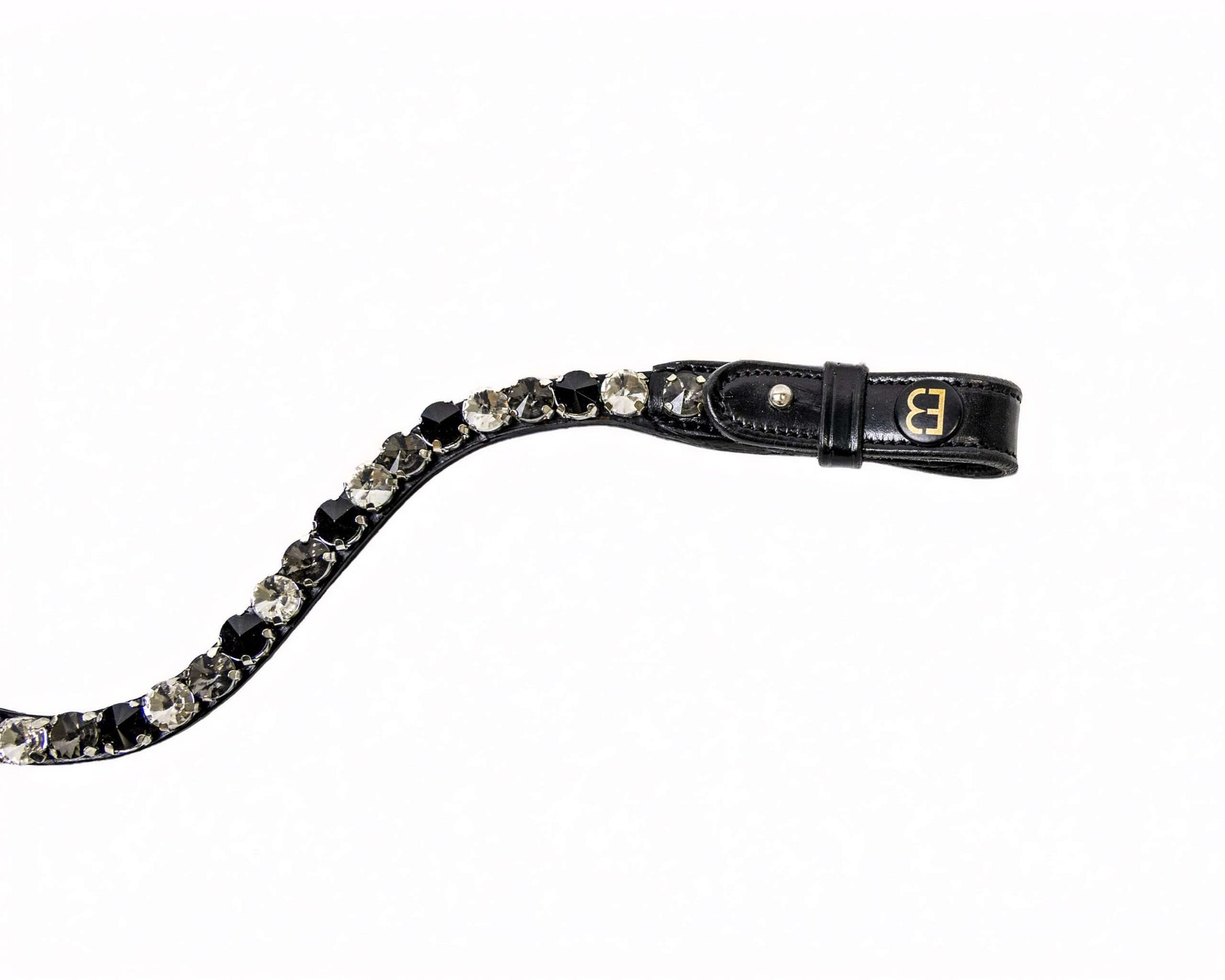 Handcrafted from premium black Italian leather, this curved browband features a striking arrangement of alternating crystals.