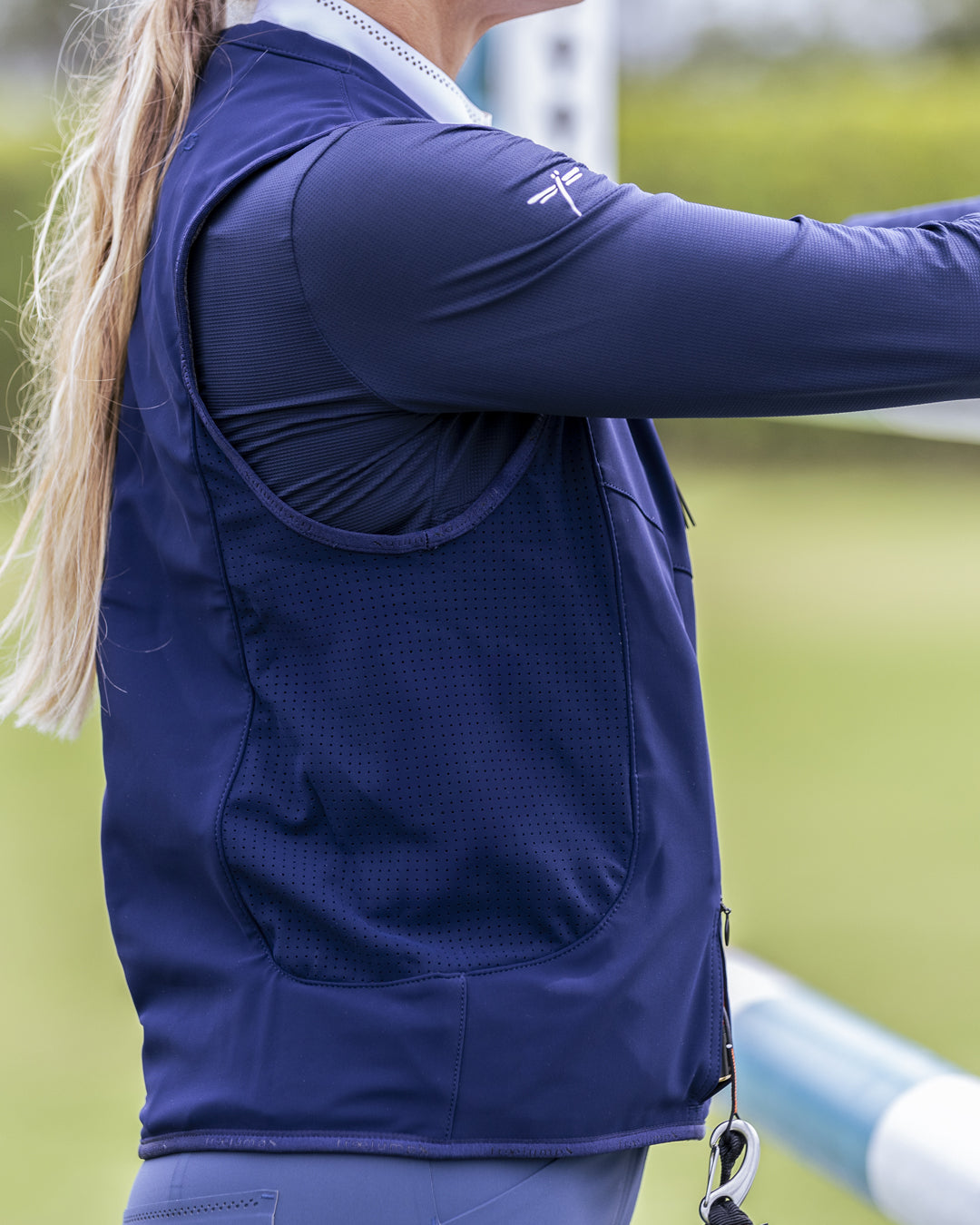 The FREEJUMP AIRBAG is a protective vest specially designed for equestrian sports to protect vital areas of the rider in the event of a fall. It can be worn over a thin layer of clothing (t-shirt, sweatshirt, or light sweater) or over a jacket.